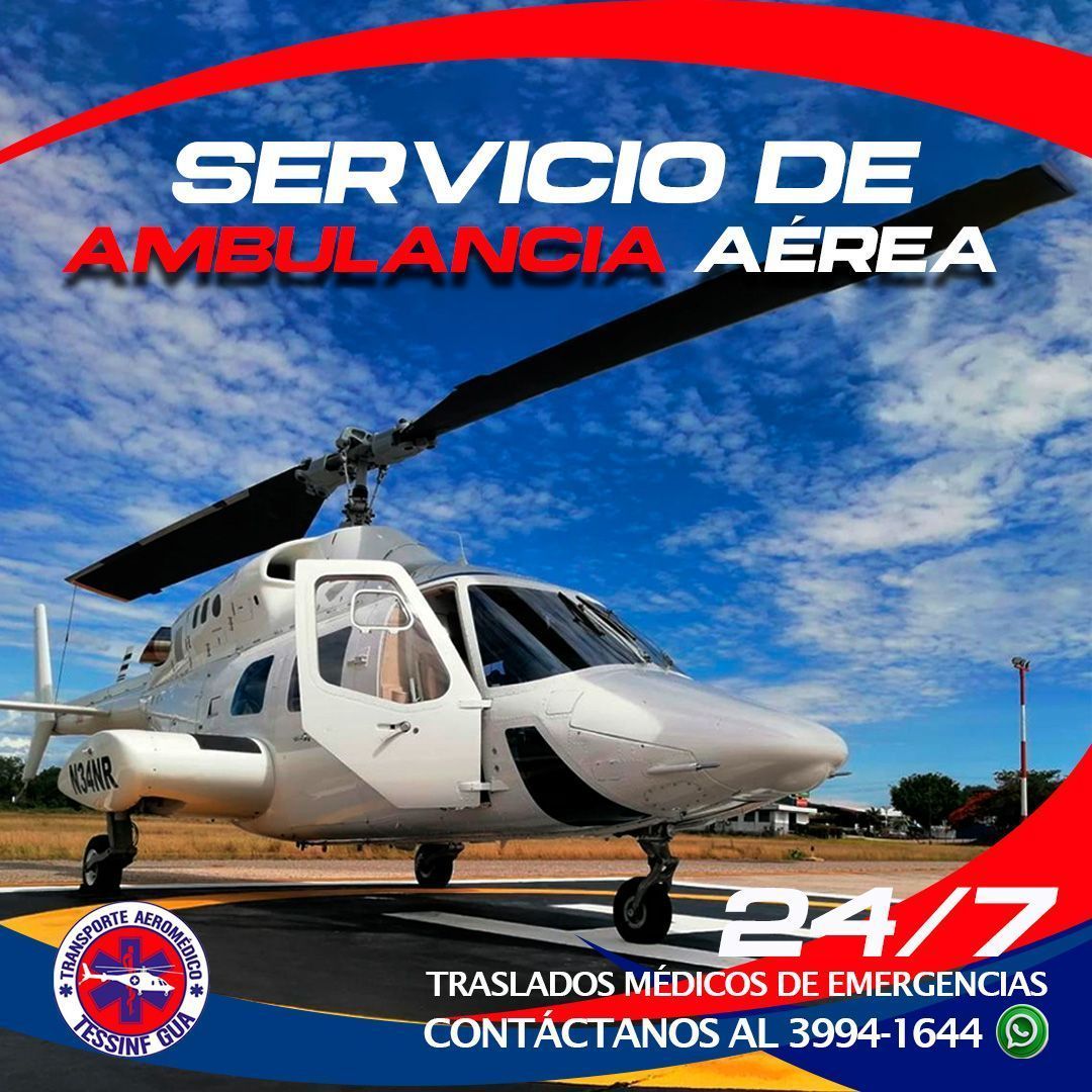 Contamos con servicio de ambulancia aérea las los 365 días del año, personal calificado y certificado en temas afines al transporte de pacientes en aeronaves de ala rotatoria y a la fija, dotadas con monitor cardiaco, ventilador de transporte, medicamentos cardiovasculares, ventilación no invasiva, etc.